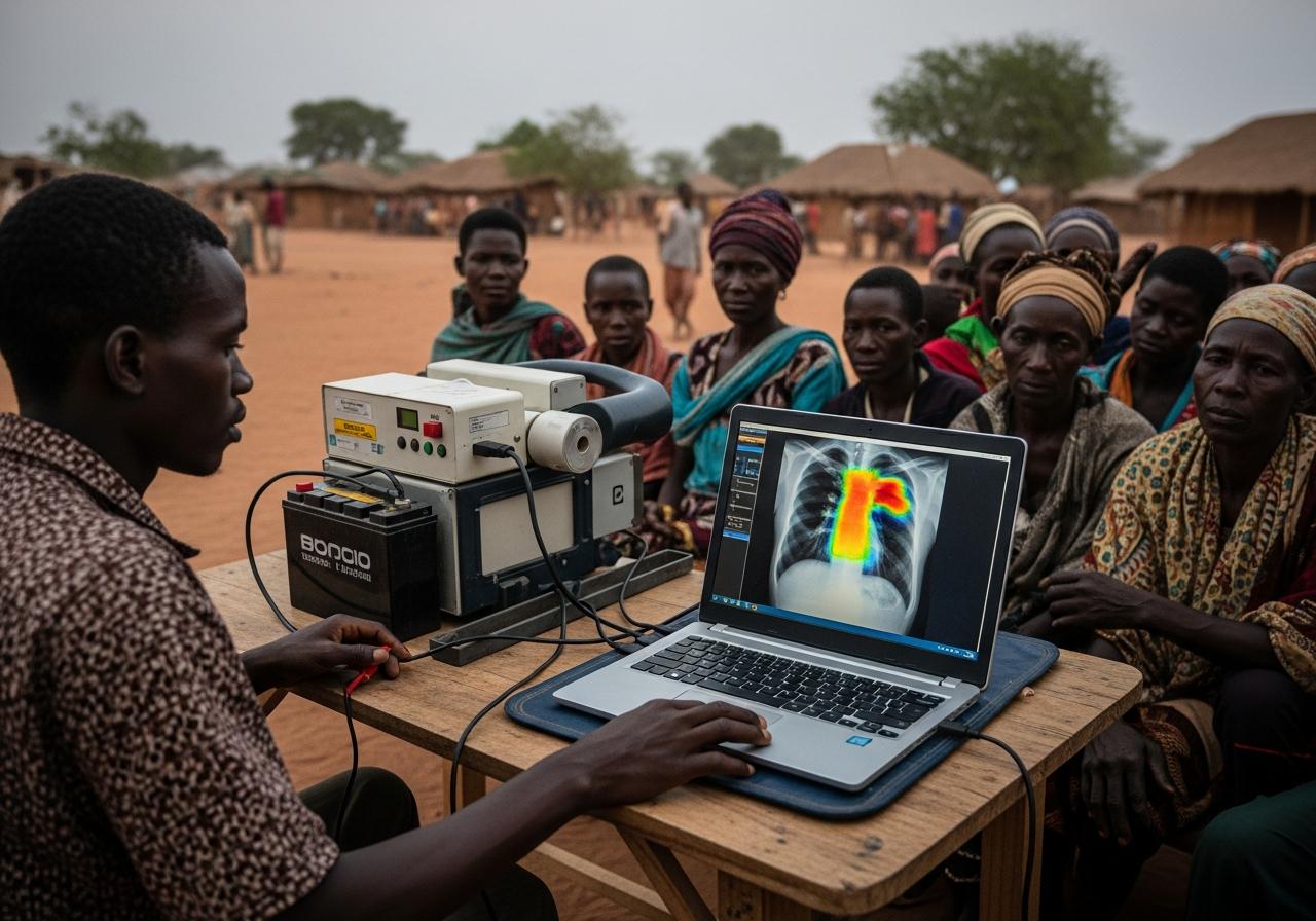 말리에서 활동하는 비의료인 디아키테 랑신은 이동형 X선 장비와 노트북, 배터리팩만으로 하루 수십 명을 검사한다. X선을 찍으면 AI가 폐 이미지를 ‘열 지도(heat map)’ 형태로 표시하며 위험 부위를 붉게 표시한다.