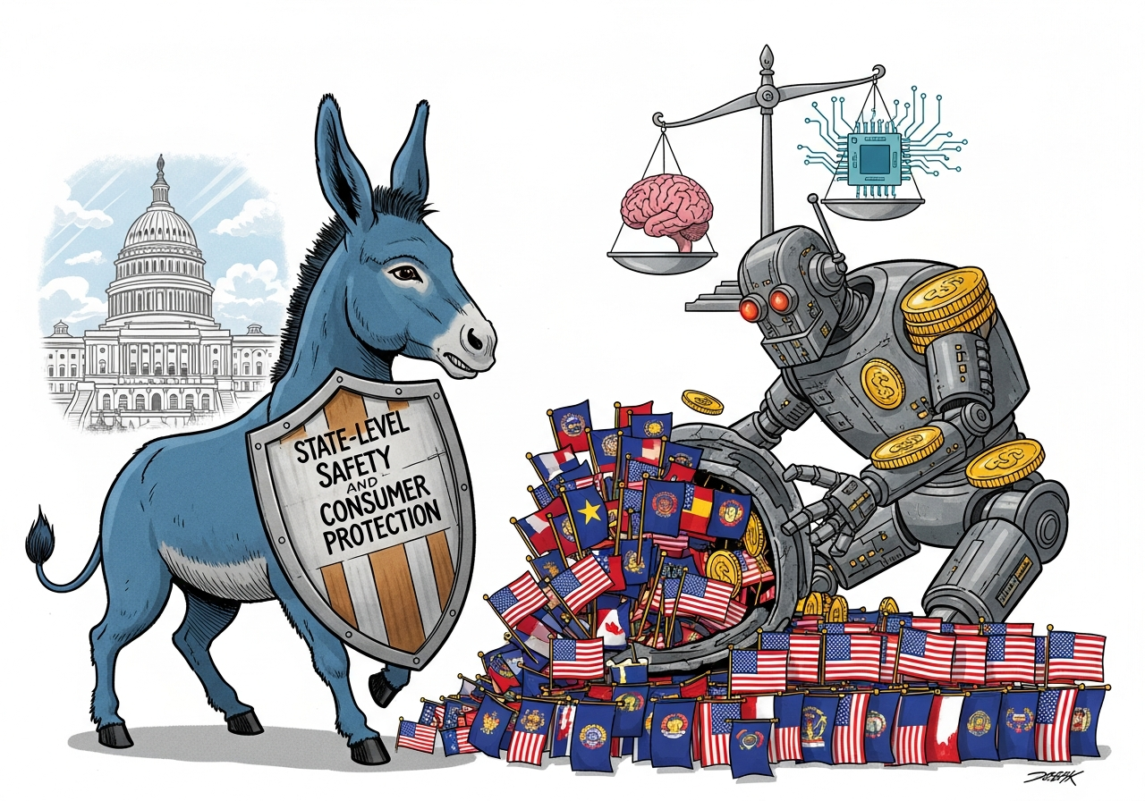 논쟁의 핵심은 연방 표준과 주별 규제의 충돌이다. 트럼프 대통령과 공화당은 국가 차원의 단일 규칙을 마련해 규제 파편화를 막아야 한다고 주장한다. 반면 민주당은 주 정부가 소비자 보호를 위해 마련한 법을 제한하는 것은 부적절하다고 보고 있다.